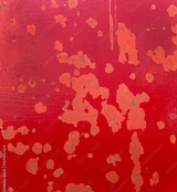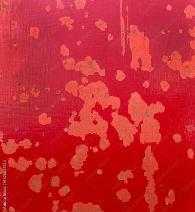 Red painted wall with peeling texture and distressed surface. Weathered paint pattern, grunge background, rustic abstract design perfect for vintage, retro, industrial, urban or creative projects.