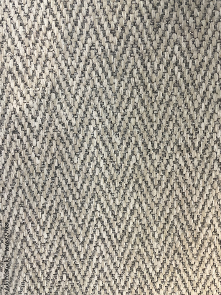 Neutral woven herringbone fabric in beige and grey tones. Textured upholstery textile ideal for cushions, furniture, wall panels, rugs, DIY crafts, and modern home decor projects. Durable and stylish.