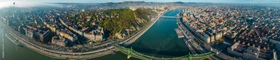 Aerial view of the city Budapest in Hungary on a sunny day in autumn.