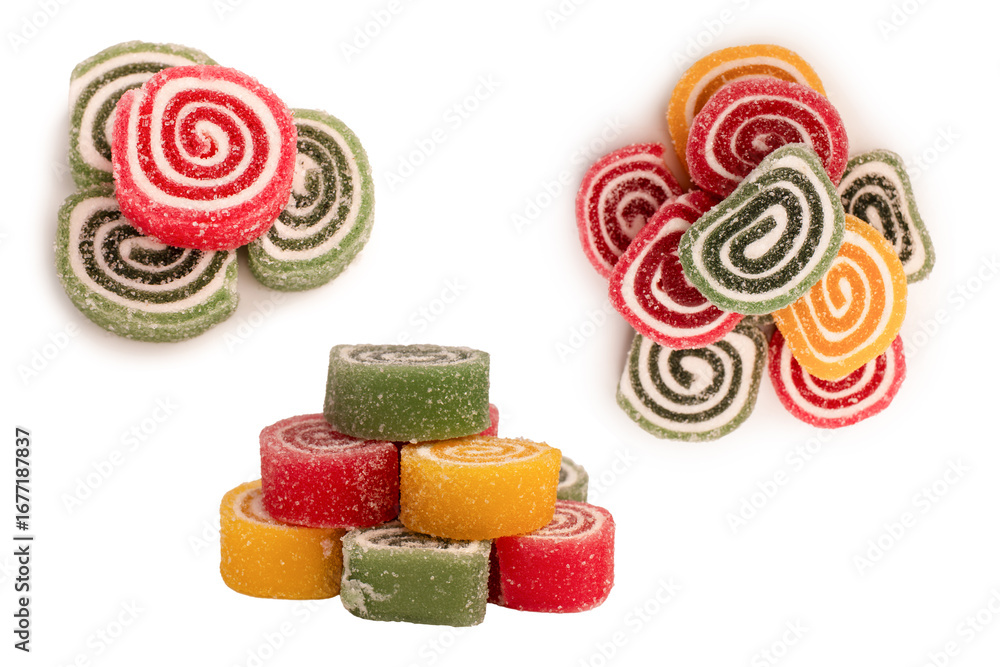Jelly sweet candy roll isolated on a white background. Marmalade candy.