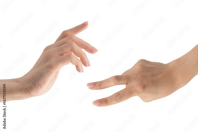 Woman hands with nude manicure isolated on a white background.
