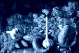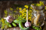 Homemade organic lightly salted cucumbers with herbs and garlic