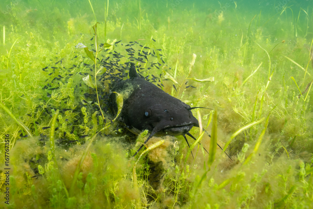 Brown bullhead guarding it's nest