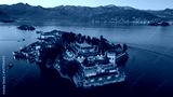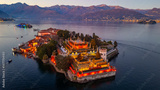 Sunset panorama of Isola Bella and Isola dei Pescatori at Lago M