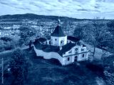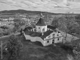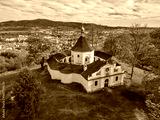 Panorama of Cesky Krumlov viewed behind Chapel of Our Lady of So