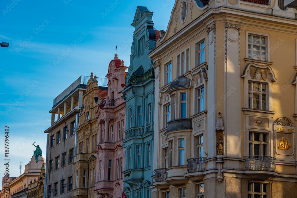 Colourful houses in the old town of Pilsen, Czech republic