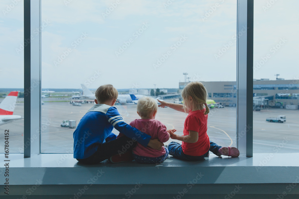 kids waiting for plane in airport