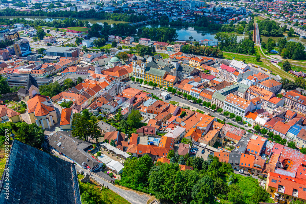Aerial view of the peace square in Trencin, Slovakia