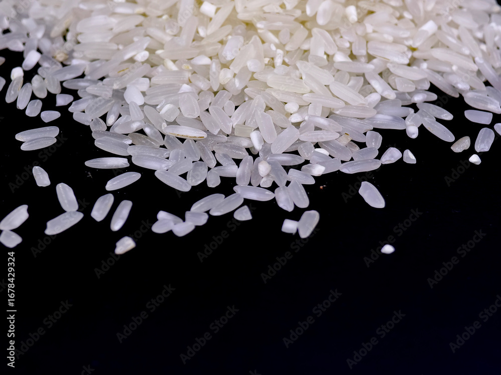 close up photo of white rice on a black background