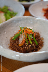 Korean Japchae Glass Noodles with Vegetables in Ceramic Bowl
