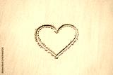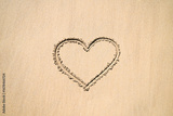 A heart painted in the fine golden sand. A backdrop for love, the beach, and vacation.