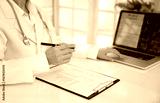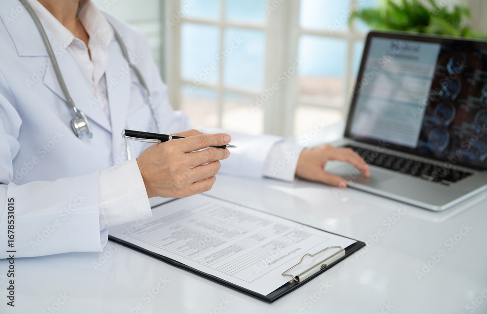 Male doctor professional reading data medical research and study medical report in room office at hospital.