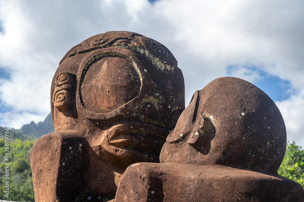 Ancient tiki statue in Atuona, Hiva Oa, Marquesas Islands, French Polynesia