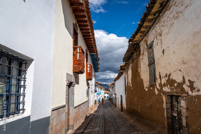 Charming Street in San Blas Neighborhood, Cusco, with Whitewashed Walls