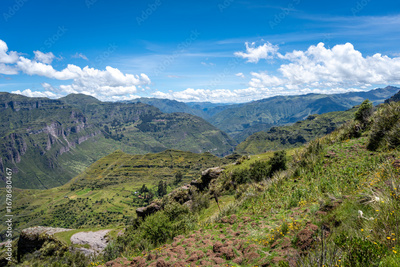 Rugged Rock Formations in the Andean Mountains at Waqrapukara, Peru