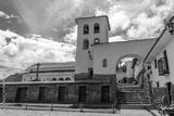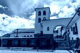 Colonial church in Chinchero, Peru, with white adobe bell tower