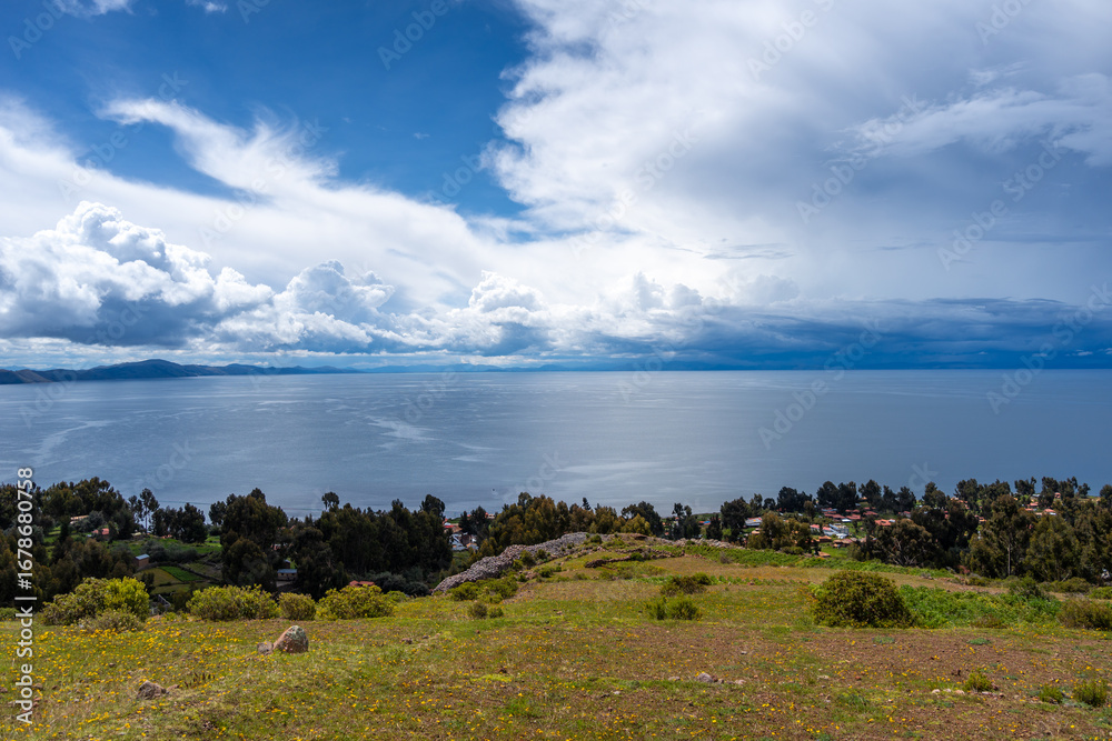 Village on Amantani Island overlooking Lake Titicaca, Peru