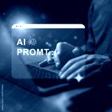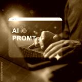 Creative process for generating AI prompts using a laptop in a cozy workspace setting at night