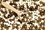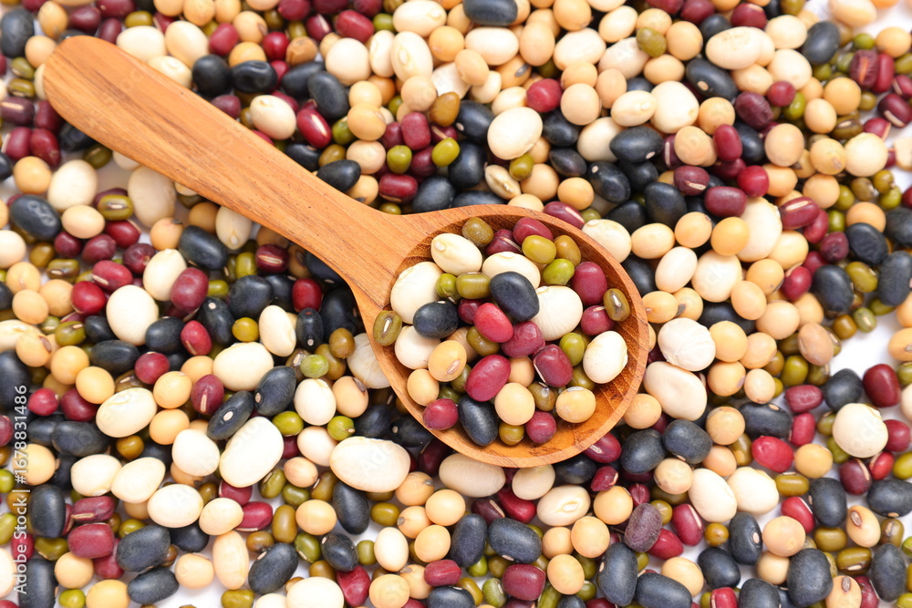 mixeda beans, beans, separated beans on white background, red beans, white beans and white beans on white