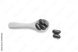 wooden spoon with beads isolated on white background