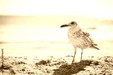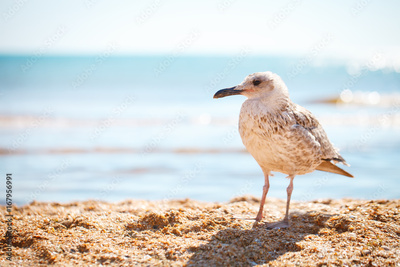 Seagull on a sandy sea shore .