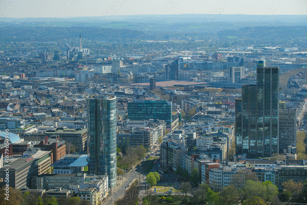 Düsseldorf cityscape with modern buildings on a hazy spring day