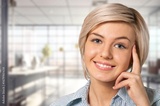 Headshot portrait of happy businesswoman corporate manager