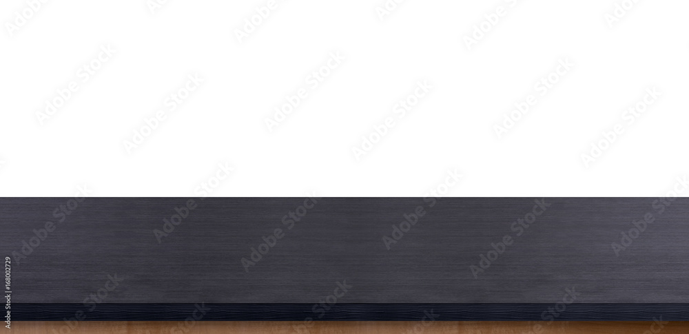 Black wood table top banner size isolated on white background,Leave space for replace your background,Mock up for display or montage of product