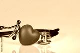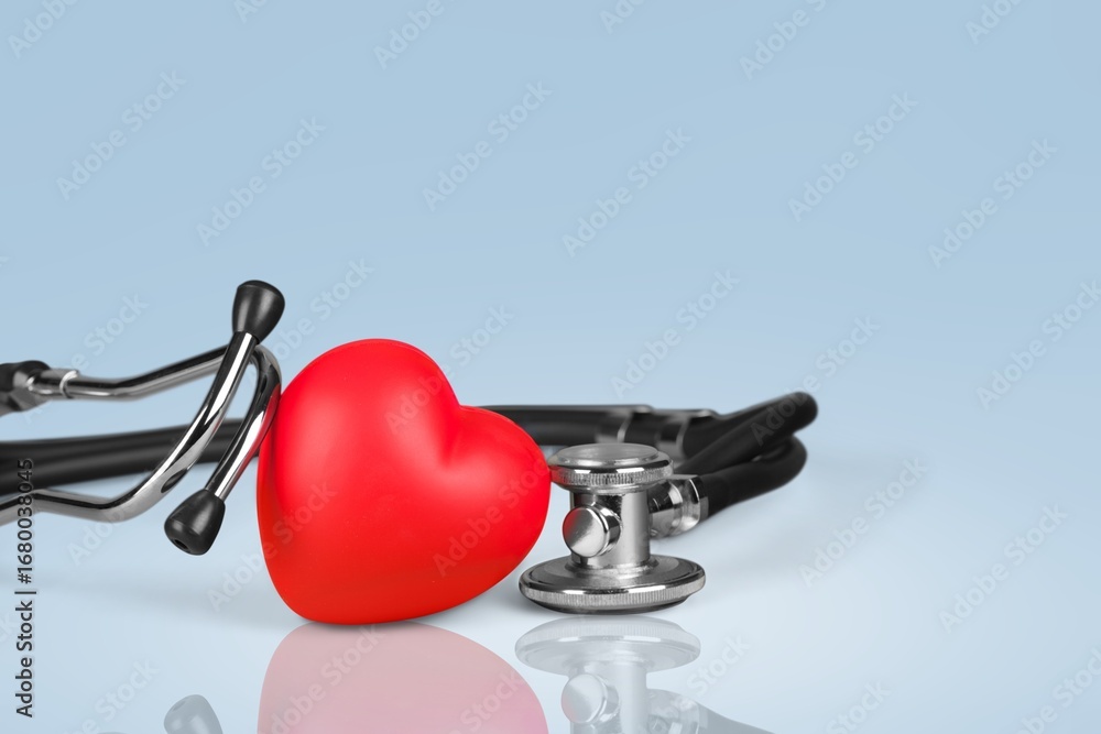 Red heart shape with doctor stethoscope, health day.