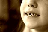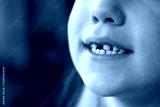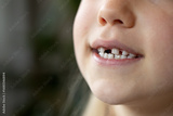 A child with missing teeth smiles in close-up. Loss of baby teeth. Caring for children's teeth