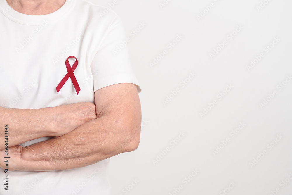 Elderly with Burgundy Ribbon for March Multiple Myeloma Cancer Awareness month, September Sickle Cell Anemia, Headache and Migraine week, April world Meningitis day, October Hospice Palliative care