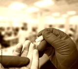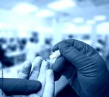 COVID-19 concept. Diagnostic Test medical worker place patient finger