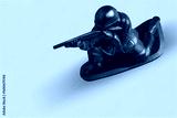 Little plastic toy army soldiers on background