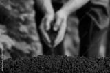 Dark soil on green nature background
