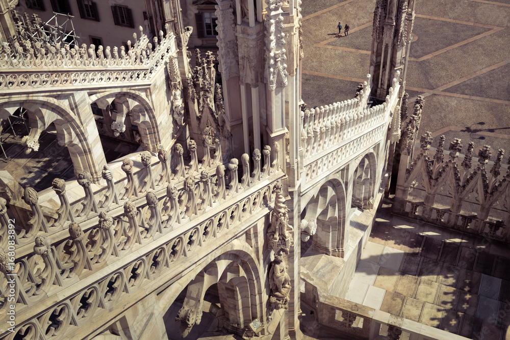 Ornate terrace and rooftop of Duomo di Milano (Milan Cathedral), Italy