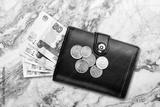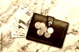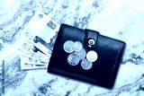Black wallet with rubles banknotes money. The concept of Finance.