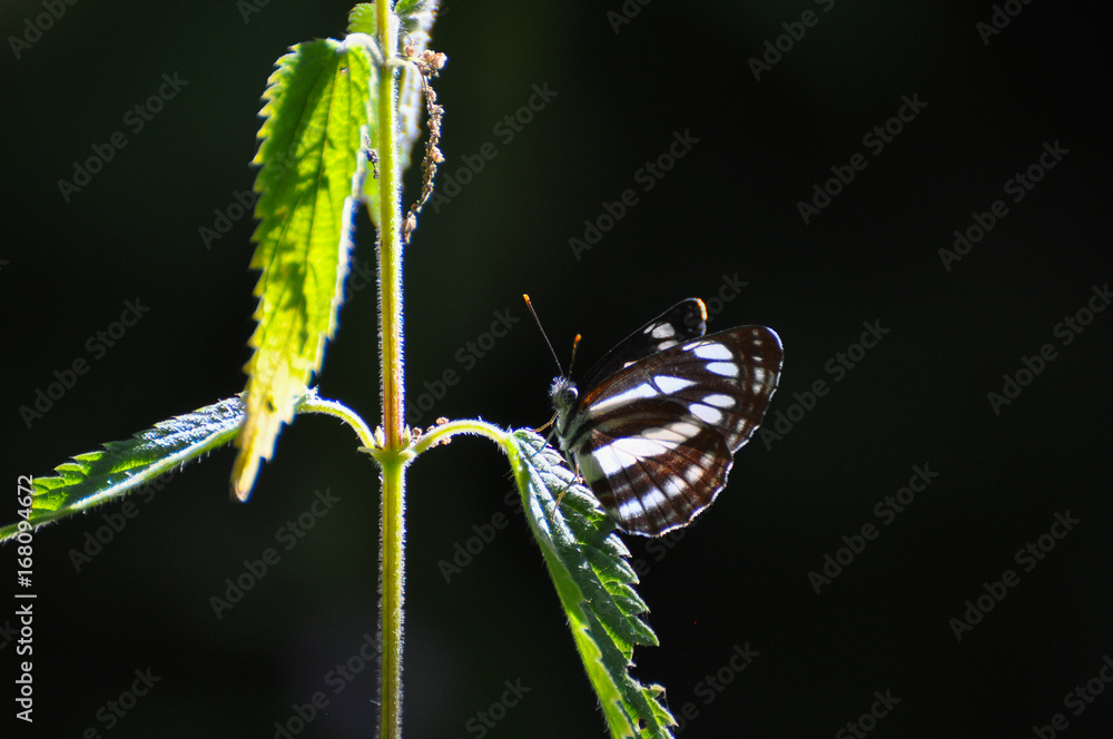 Neptis sappho, Common Glider butterfly resting on a leaf. Black and white butterfly in natural habitat