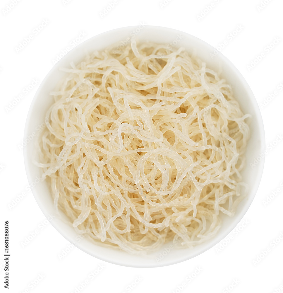 flat lay Korean glass noodle vermicelli for Japchae food cutout in bowl