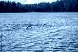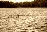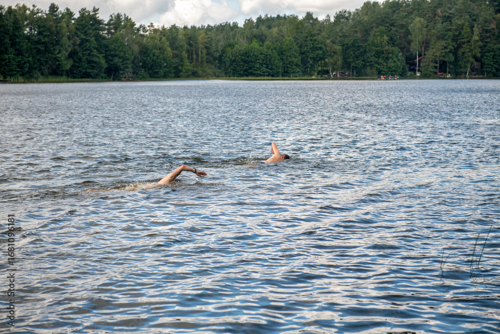 dwóch zawodników płynących podczas zawodów triathlonowych