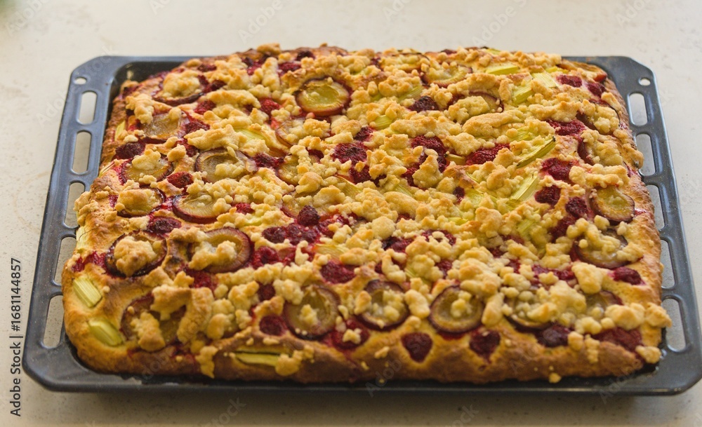 yeast cake with fruits and crumble, ciasto drożdżowe z owocami i kruszonką