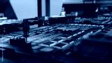 Automated Machinery Places Microchips Onto Circuit Boards, Precision Robotics for Semiconductor Production. Advanced Technology in Modern Assembly Line, Optimizing Electronics Manufacturing Processes.