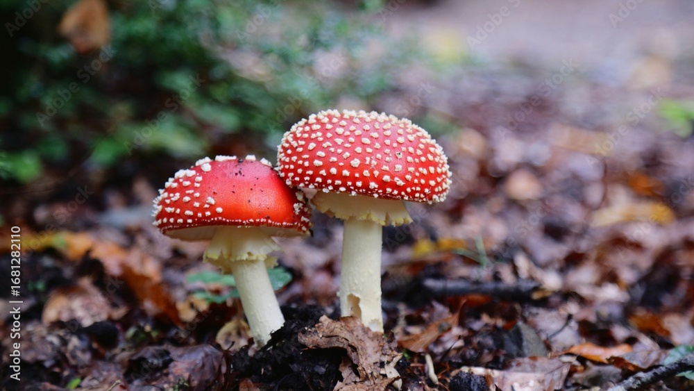 Fly agaric toxic mushrooms. Ordesa y Monte Perdido National Park nature in Spain.