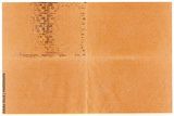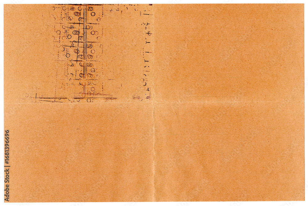 Vergilbtes A4 Papier mit Stempeldruck Fragmenten von Würfel drei - Papierfund mit Bruchteilen von Unterrichtsmaterial
