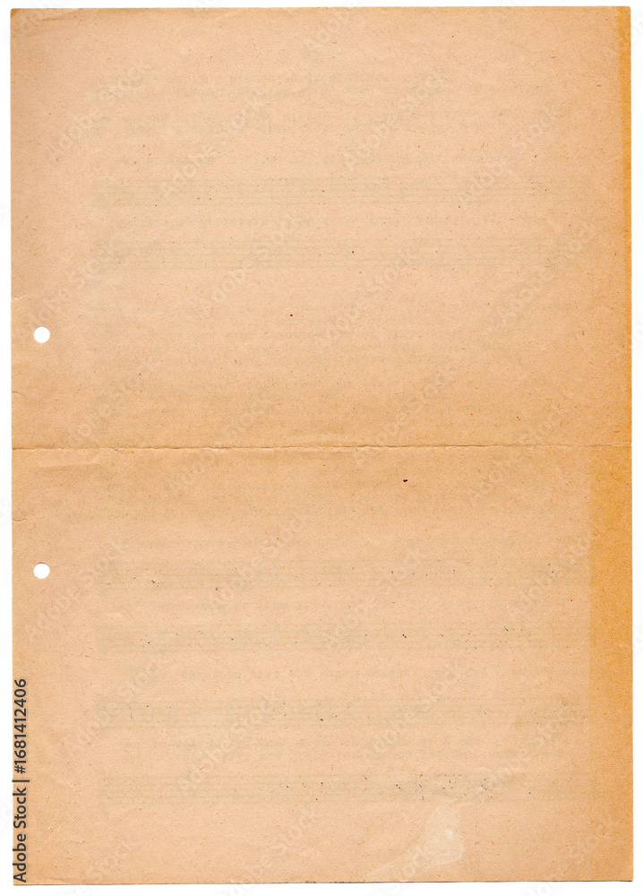 Gelochtes, grobes A4 Blatt, geknickt mit Notenlinien rückseitig