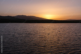 Embalse de Tabuyo del Monte y Montes de León al atardecer. Presa de Valtabuyo.