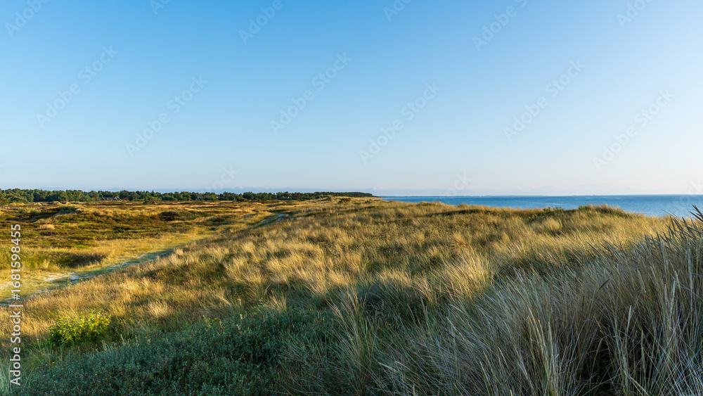Blick auf die Dünenheide auf Hiddensee im Sommer