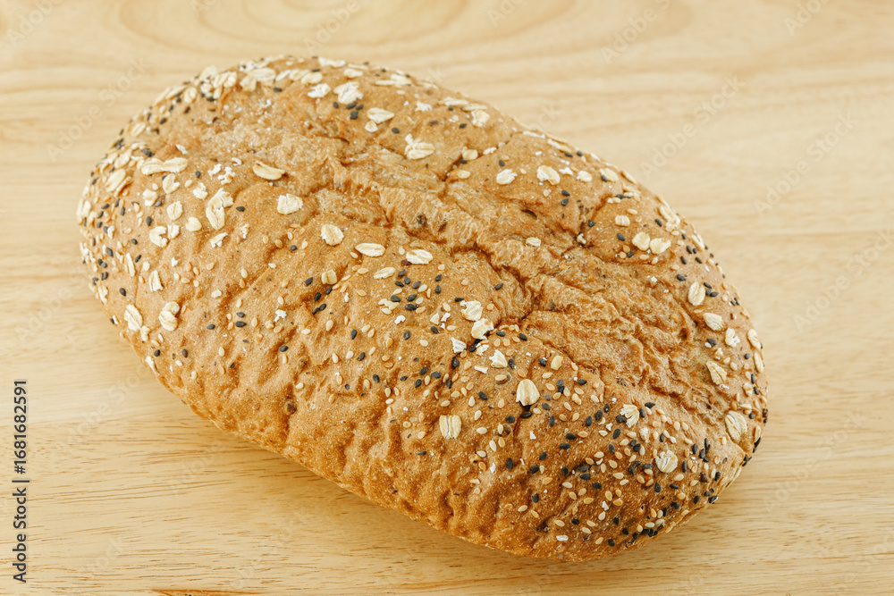 Whole Grain Bread Freshly baked bread topped with flax seeds and sunflower seeds