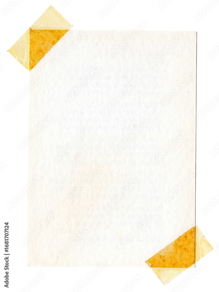 Papierstück bzw. Postkarte mit Klebestreifen in gelblicher, vergilbter Optik im retrolook