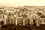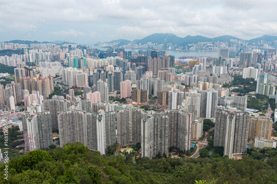 View of Hong Kong and Kowloon from Lion Rock Head. Panorama of Hong Kong, skyscrapers and nature.