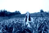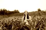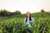 Thai woman inspecting corn growth in field